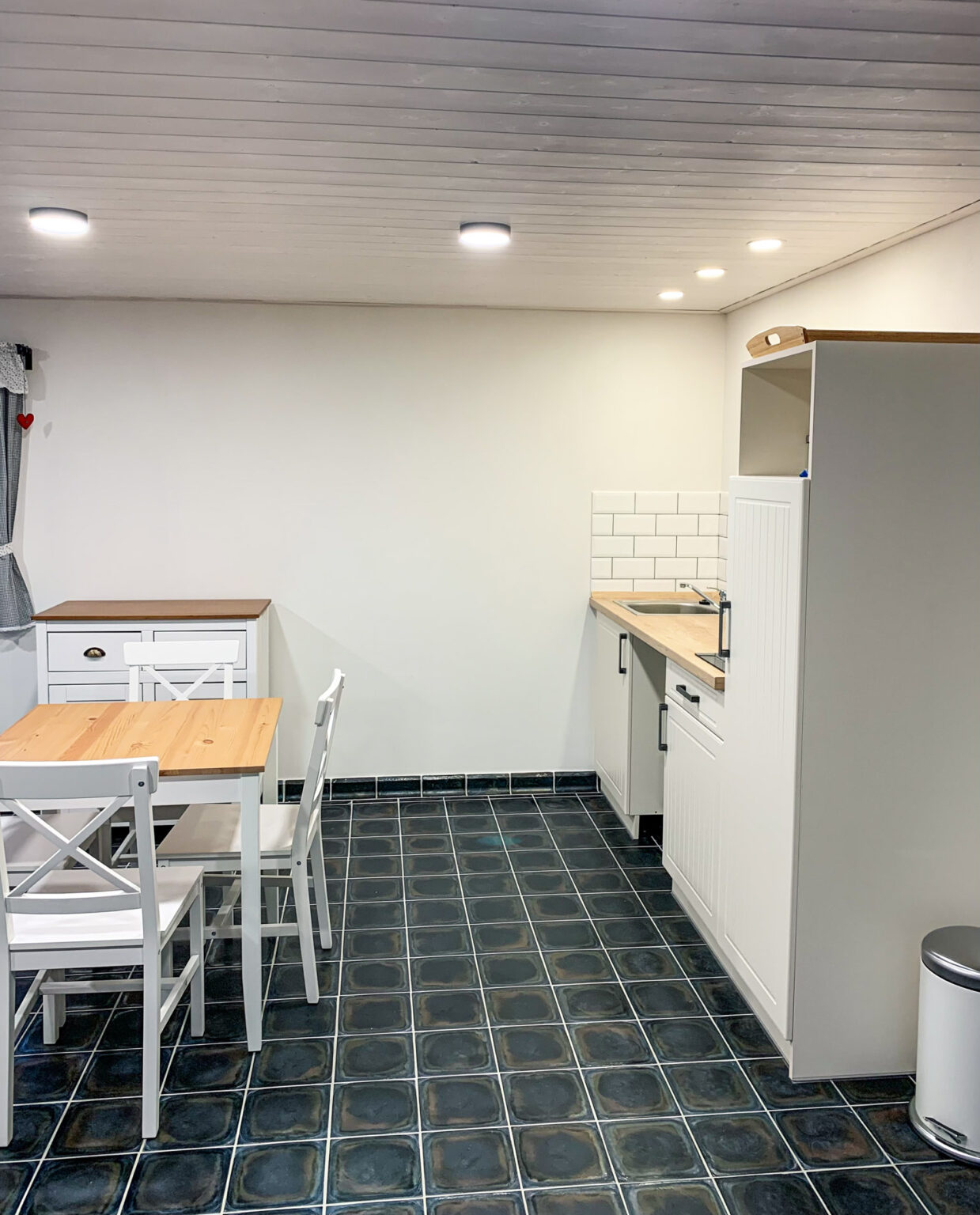 – vybavený kuchyňský kout (mikrovlnná trouba, rychlovarná konvice, kuchyňské vybavení, lednice s malým mrazákem, sklokeramická deska, kávovar Tchibo caffisimo, topinkovač)